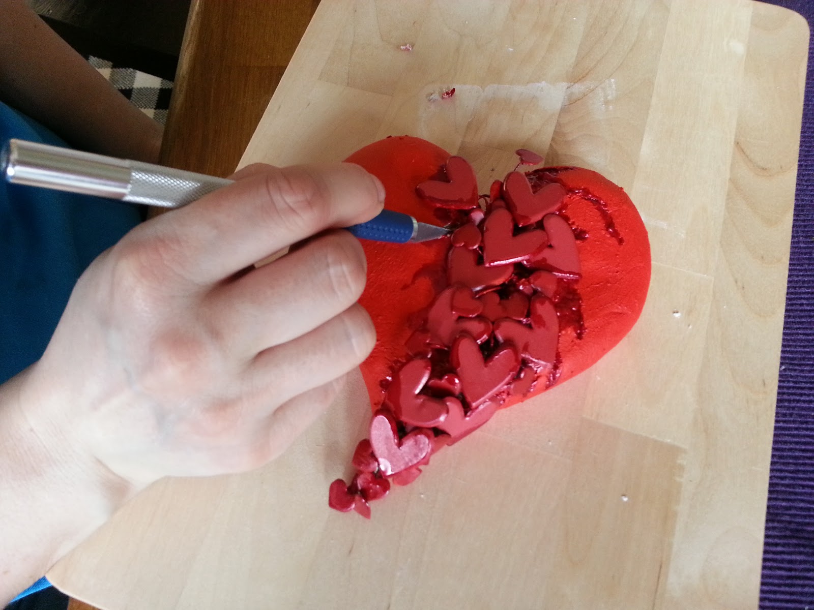 Jag satte i alla de små hjärtan som väller ut ur hjärtat och målade det rött. Sedan lade jag till rött nagellack i sprickorna för att förhöja effekten.